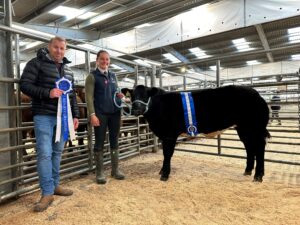 Sincere thanks as always go to our generous sponsors, as indeed they do to our judge this morning Mr R Mather of Picket How. This year the November suckled calf producers competed for the new John Norwood Spedding memorial trophy which was kindly donated by Ian Spedding of Harelaw Farm, Wolsingham in memory of his late father who was a true Darlington mart stalwart in years gone by. A picture-perfect pair of young steers from the prolific Stones family of Nun Cote Nook Farm, Marrick claimed the champion and reserve rosettes. Coming out on top was their April 24 born bullock, sired by British Blue stock bull Valley Optical he narrowly got the nod over their February 24 born Limousin which was sired by the same bull as our October calf champion, Hollyberry Red Rum. A full list of our prize winners can be seen below with credit to all but especially to both the Stones and Wilson families who between them claimed all the red rosettes.